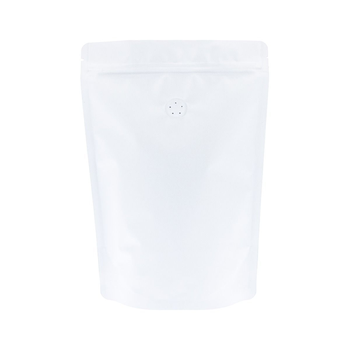 Una alegría recibirlo. Tu café, empaquetado en una bolsa de pie blanca mate. Las bolsas ofrecen una protección óptima para tu café (contra la humedad, el oxígeno y la luz). Además, las bolsas cuentan con 4 esquinas redondeadas, una válvula de café, cierre de cremallera resellable y una muesca para rasgar.